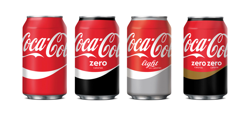 Coca-Cola hace una apuesta por unificar bajo un mismo código visual, la identidad de sus diferentes marcas. Coca-Cola, Coca-Cola light, Coca-Cola Zero y Coca-Cola Zero-zero. Semejante iniciativa, aunque se trata de una prueba piloto en España, es un movimiento muy importante.